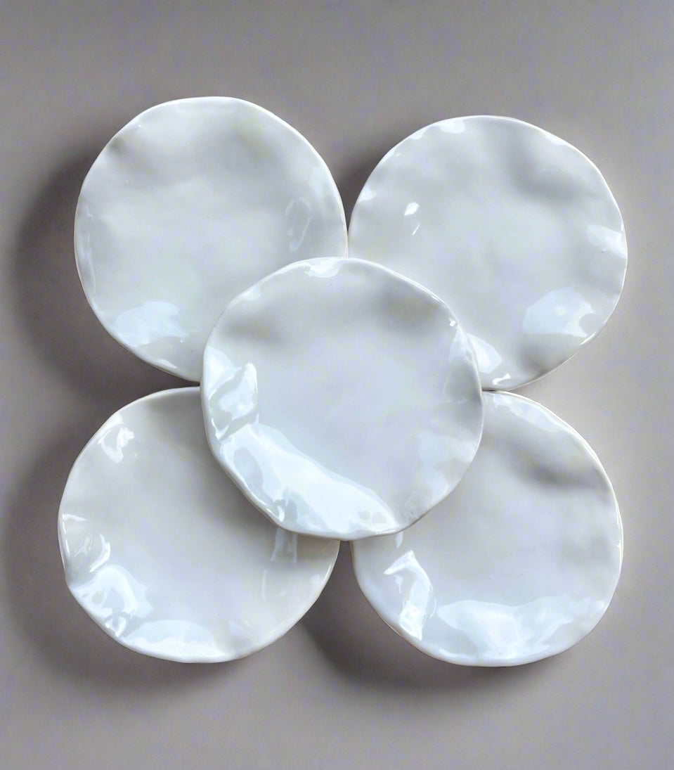 Each one is handcrafted from durable stoneware clay and is 5 inches by 5 inches