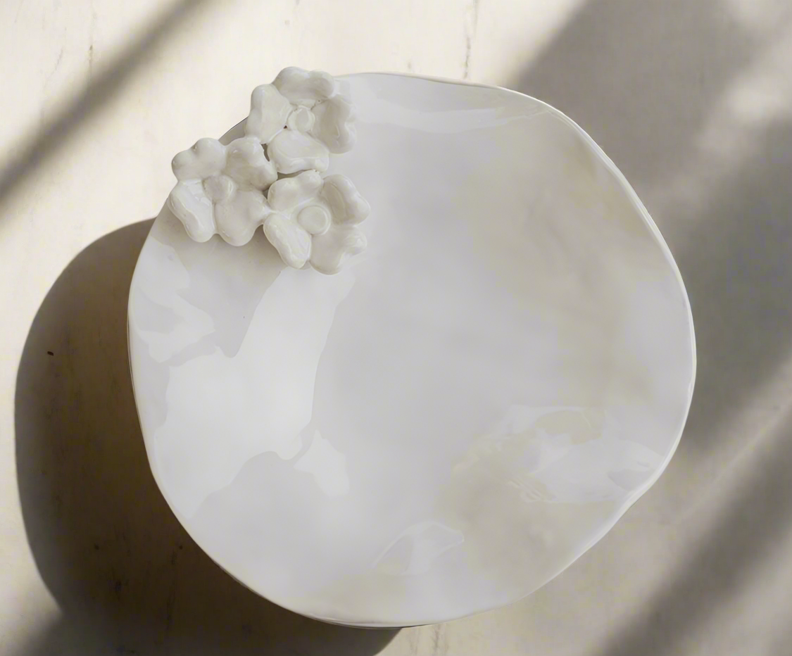 Crafted from durable white stoneware and finished with lead-free glazes, this platter combines safety and longevity. Its elegant floral design adds a refined touch, making it an ideal centerpiece for your entry table. Designed for both everyday use and special occasions, it offers a blend of functionality and aesthetic appeal.